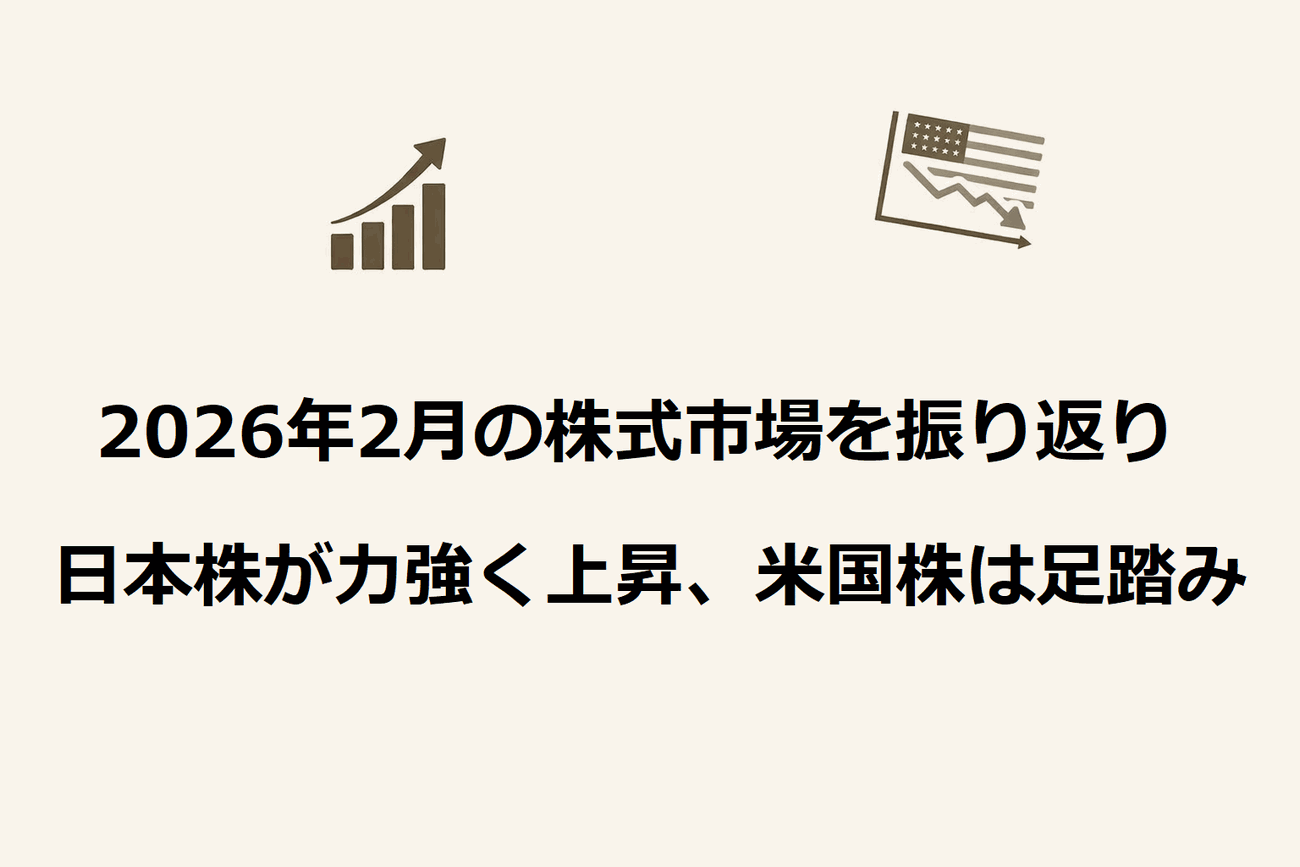 2026年2月の主要株価指数を振り返ると、日本株と米国株で明暗がはっきり分かれた1カ月でした。