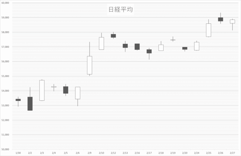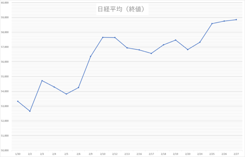 | 今月末終値 | 58,850.27円 | 2/27 |
