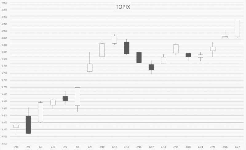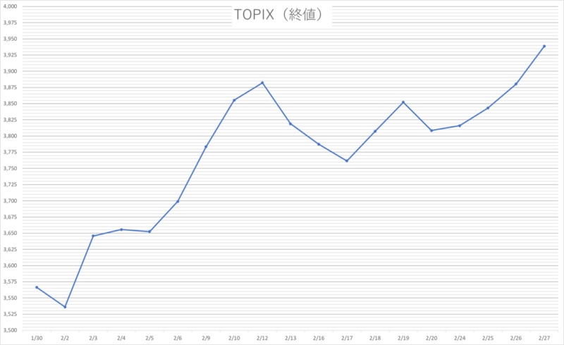 | 今月末終値 | 3,938.68pt | 2/27 |
