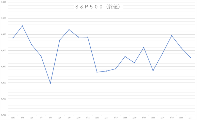 | 今月末終値 | 6,878.88pt | 2/27 |