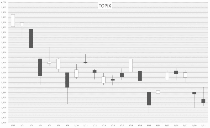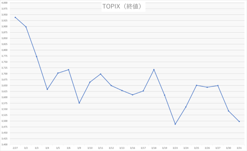2026年3月のTOPIXも、日経平均と同じく下落基調が続いた1カ月でした。