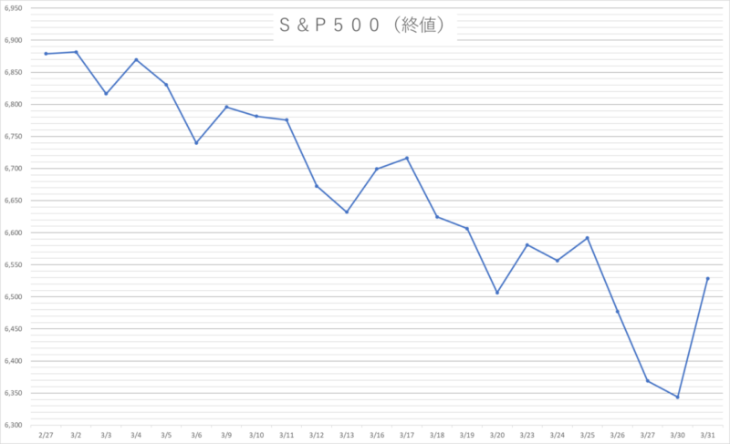 | S&P500 | 6,878.88pt | 6,528.52pt | -5.09% |